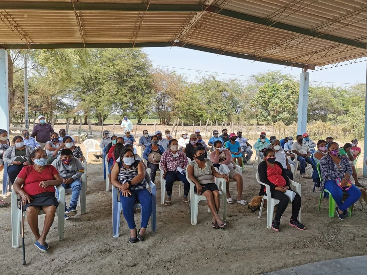 People in the community of Totoral Bajo (one of the 7 communities in the Piura Region of Peru that Vera Aqua Vera Vita will be serving in the near future) participating in a project kickoff townhall meeting. (Nov. 9, 2020)